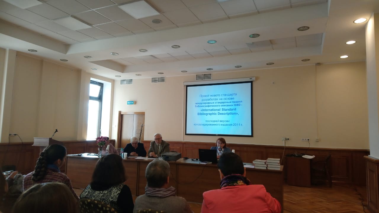 ПРОГРАММА состояла из важных тем: «Новые требования к библиографическому описанию: к вводу в действие ГОСТ Р 7.0.100-2018 Библиографическая запись. Библиографическое описание. Общие требования и правила составления», докладчик Г. П. Калинина, начальник НИО библиографии, Российская книжная палата / филиал ИТАР-ТАСС; «Некоторые особенности нового стандарта библиографического описания», докладчик Н К. Леликова, д-р пед. наук, зав. НИО библиографии и краеведения, Российская национальная библиотека; «Варианты библиографического описания в альтернативных требованиях национального стандарта», докладчик А. А. Джиго, канд. филол. наук, зав. НИО библиотековедения, Фундаментальная б-ка ИНИОН РАН и др.