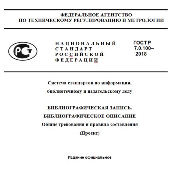 1 июля 2019 года в России вступил в силу новый ГОСТ Р 7.0.100-2018 «Библиографическая запись"