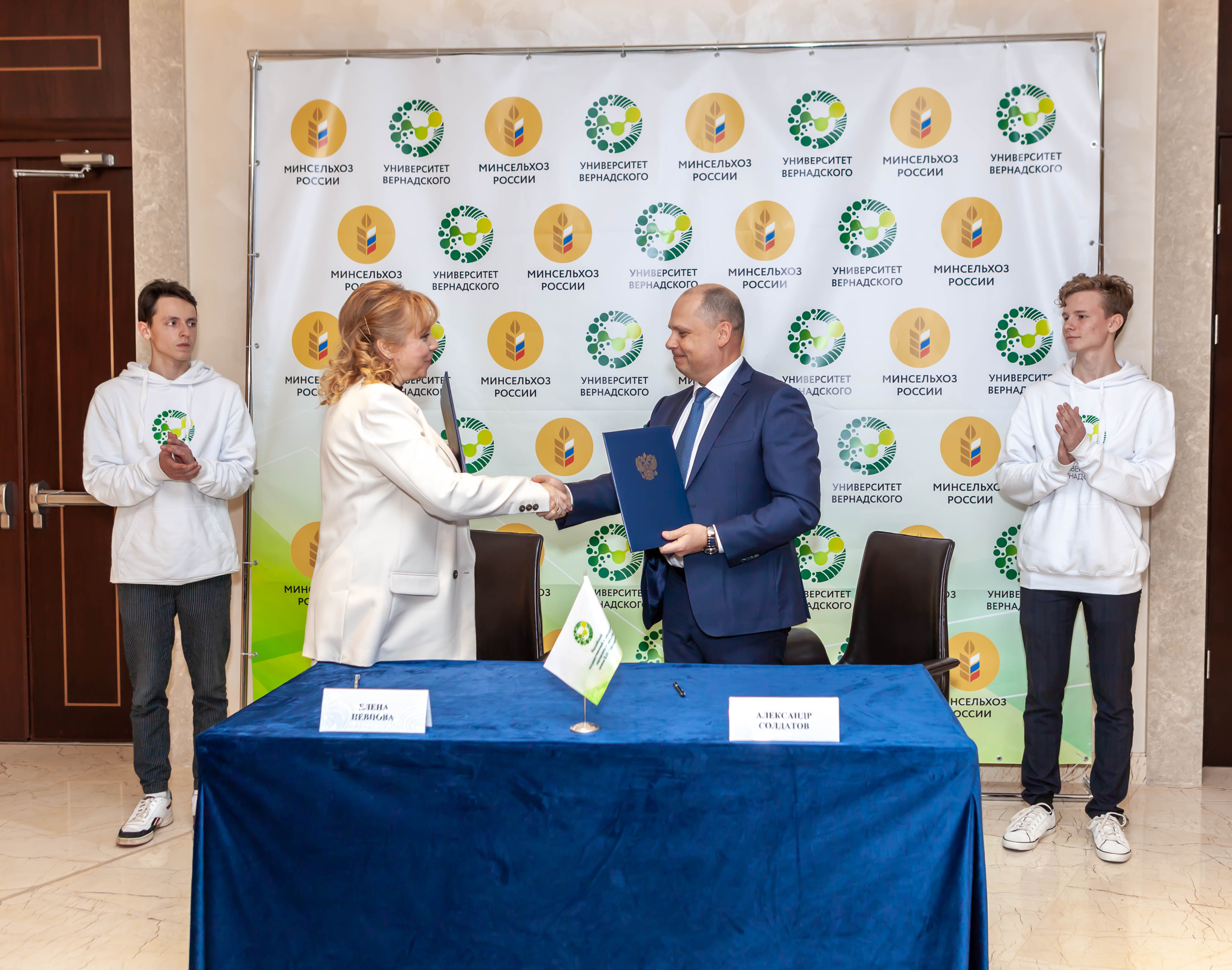 Подписано Соглашение о стратегическом партнерстве Российского государственного университета народного хозяйства имени В.И. Вернадского и Российского биотехнологического университета. В торжественной церемонии подписания соглашений приняли участие ректор Университета Вернадского Елена Певцова и и.о. ректора Росбиотех Александр Солдатов.