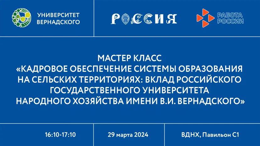 29 марта на ВДНХ в рамках Международной выставки-форума «Россия» Российский государственный университет народного хозяйства имени В.И. Вернадского организует площадку Фестиваля профессий, на базе которой будут презентованы результаты научных исследований Университета по проблематике устойчивого развития сельских территорий.