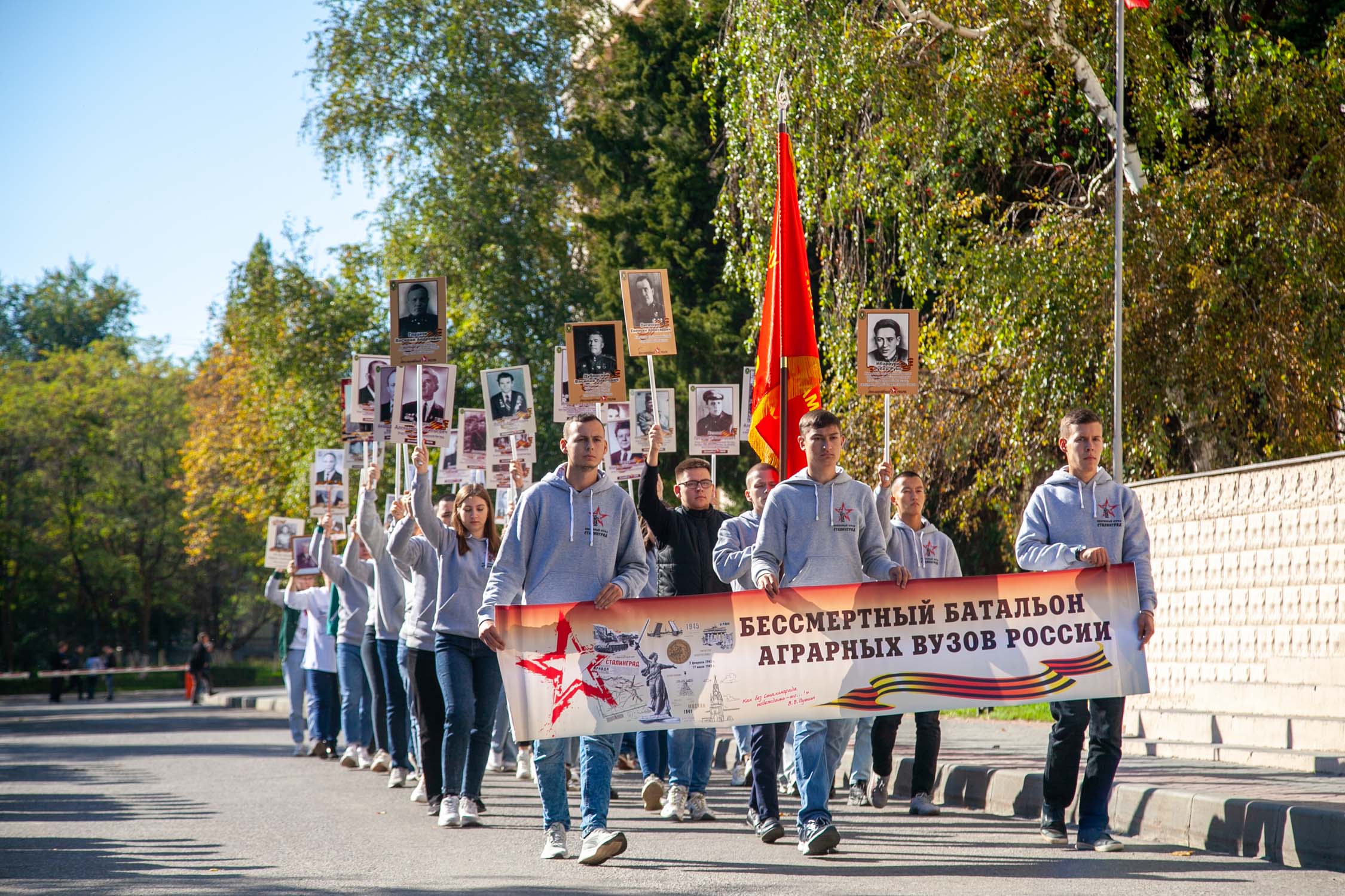 С 6 по 8 октября 2022 года на площадке Волгоградского государственного аграрного университета состоялся VI Всероссийский слет патриотических клубов и объединений аграрных вузов «Родная земля», посвященный 55-летию Мамаева Кургана. Традиция проводить слет берет свое начало с 2016 года. На героической Сталинградской земле собрались представители 37 высших учебных заведений страны. РГАЗУ представляли студент 2 курса факультета Электроэнергетики и технического сервиса Алексей Божедомов и начальник отдела воспитательной,социальной и международной деятельности Яна Андреевна Потапова. Программа патриотического слета была очень насыщенной: бессмертный полк, экскурсии по историческим места и местам воинской славы, встреча с ветеранами, выступление спикеров и представителей "Росмолодежи", показательные выступления творческих и трудовых, поисковых коллективов университета и города. Завершающий день запомнился реконструкцией боя на Мамаевом кургане и большим праздничным концертом. Мероприятие запомнилось необыкновенным чувством гордости, уважения и памяти к историческому прошлому и верой в светлое будущее нашей страны. Выражаем благодарность организатором слета.