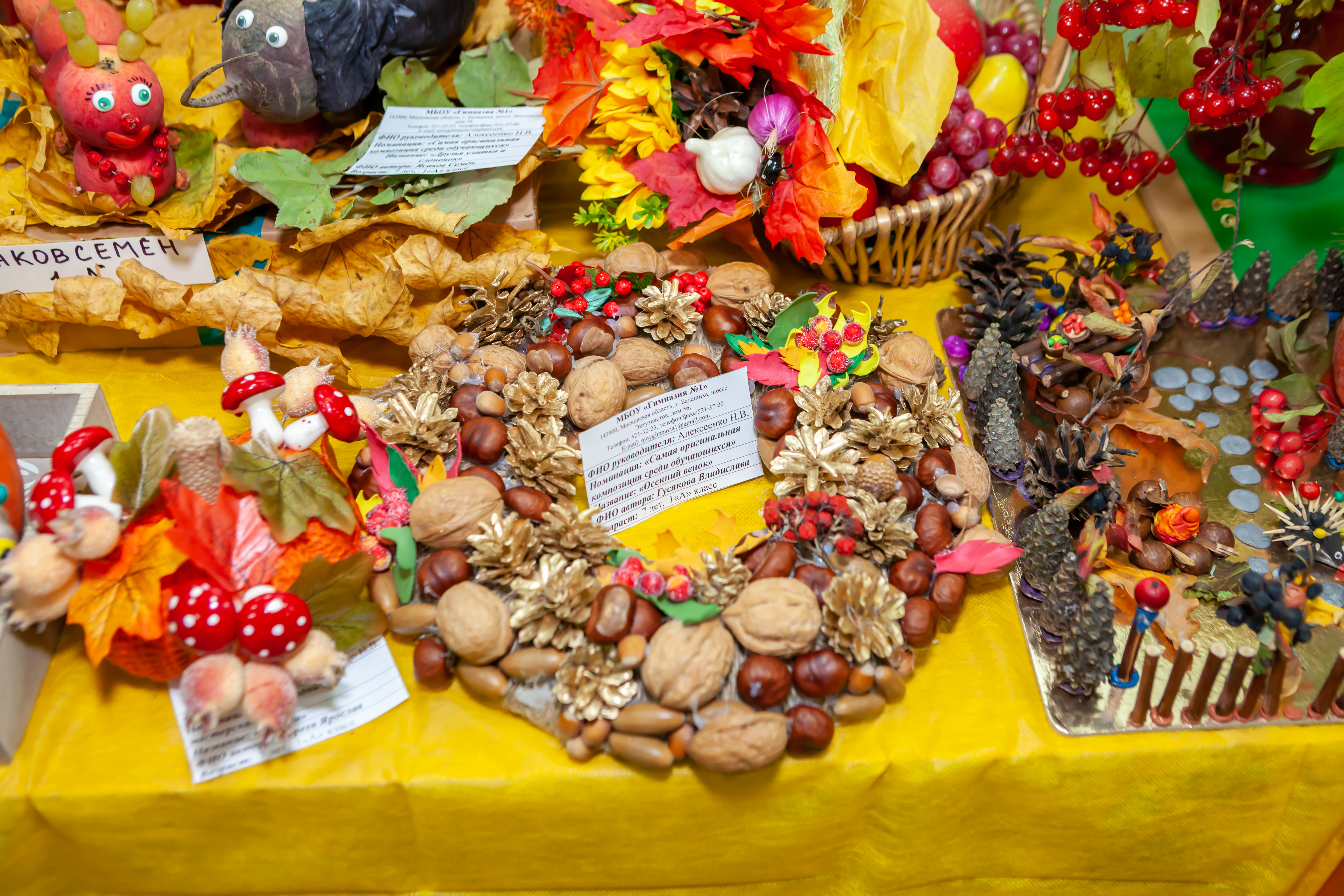 Победителями в выставке-конкурсе стали: Гимназия №1 "Самая оригинальная композиция среди общеобразовательных учреждений", Студенческий совет РГАЗУ "Самая оригинальная композиция среди обучающихся высшей школы", Классическая православная гимназия "Ковчег" номинация "Природная мастерская", коллектив факультета Электроэнергетики и технического сервиса "Соленья-варенья", кафедра управления "Лучшая цветочная композиция", Федосеева Наталья Анатольевна "Кулинарный шедевр" с работой "Фаршированный судак с креветками и вареными раками", Ефремов Алексей Николаевич "Чудо-утка". Все участники были награждены грамотами за активное участие.